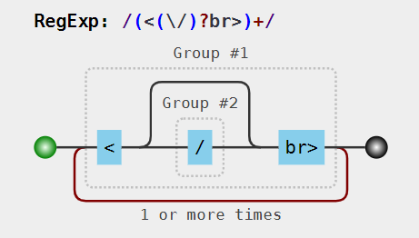 题目中一共出现了两个正则表达式,分别为:(<.*>)+, (<(\/)?br>)+。