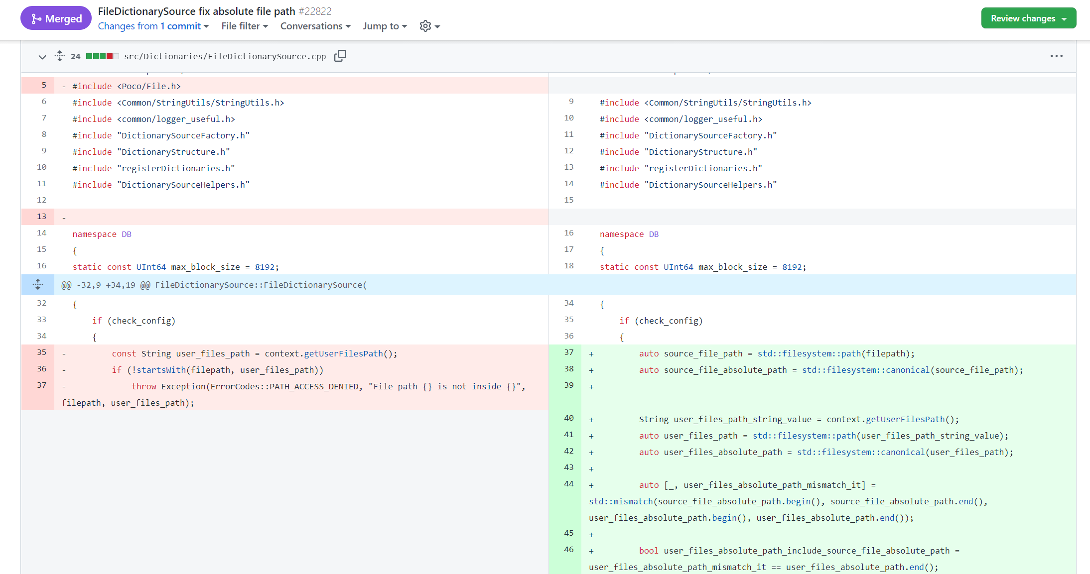 修复了src/Dictionaries/FileDictionarySource.cpp中的目录穿越问题。