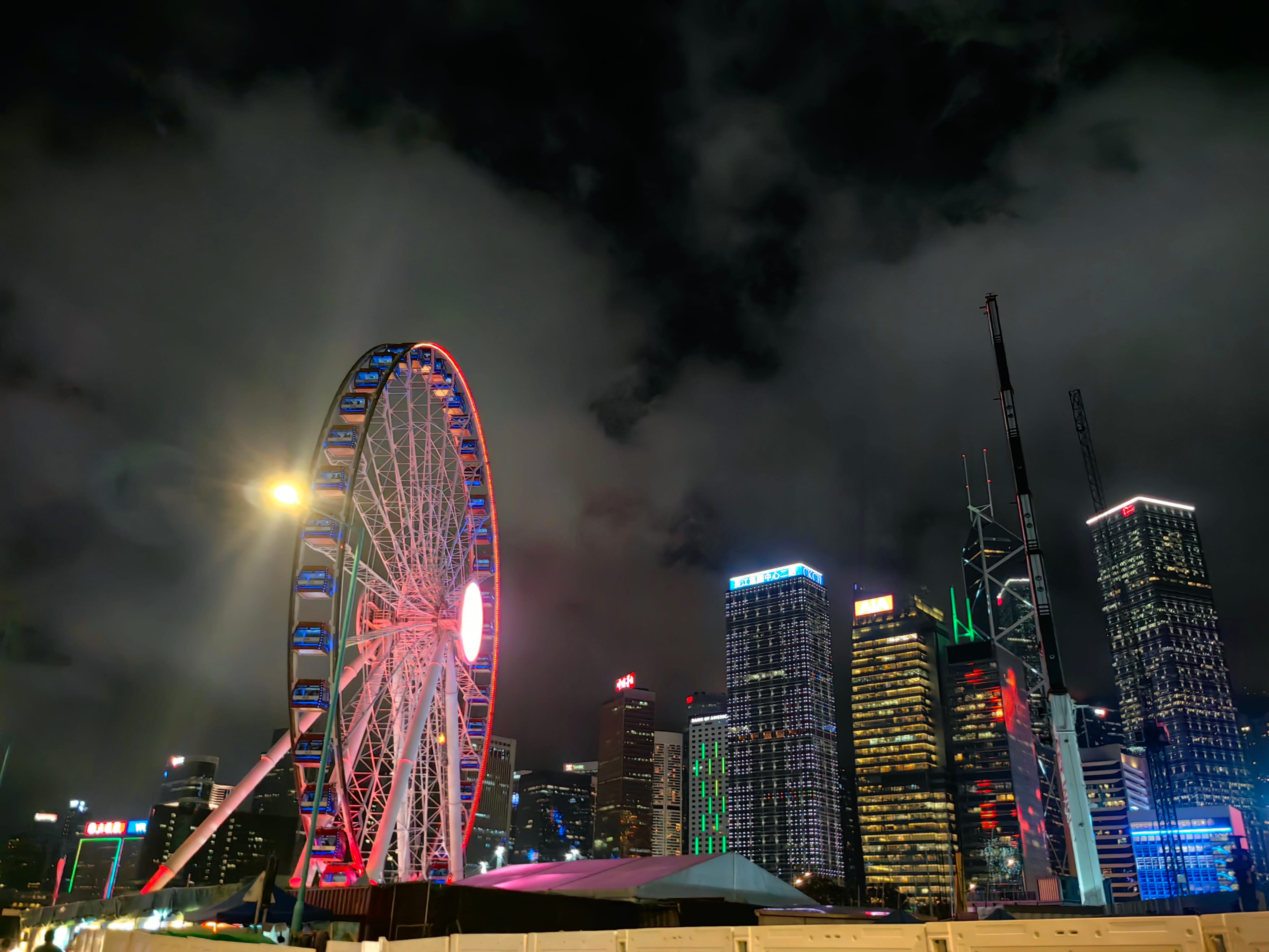 赶紧坐巴士下山,刚好八点到中环摩天轮,非常漂亮~ 20hkd三圈,人不多坐一下看看夜景非常快乐了。